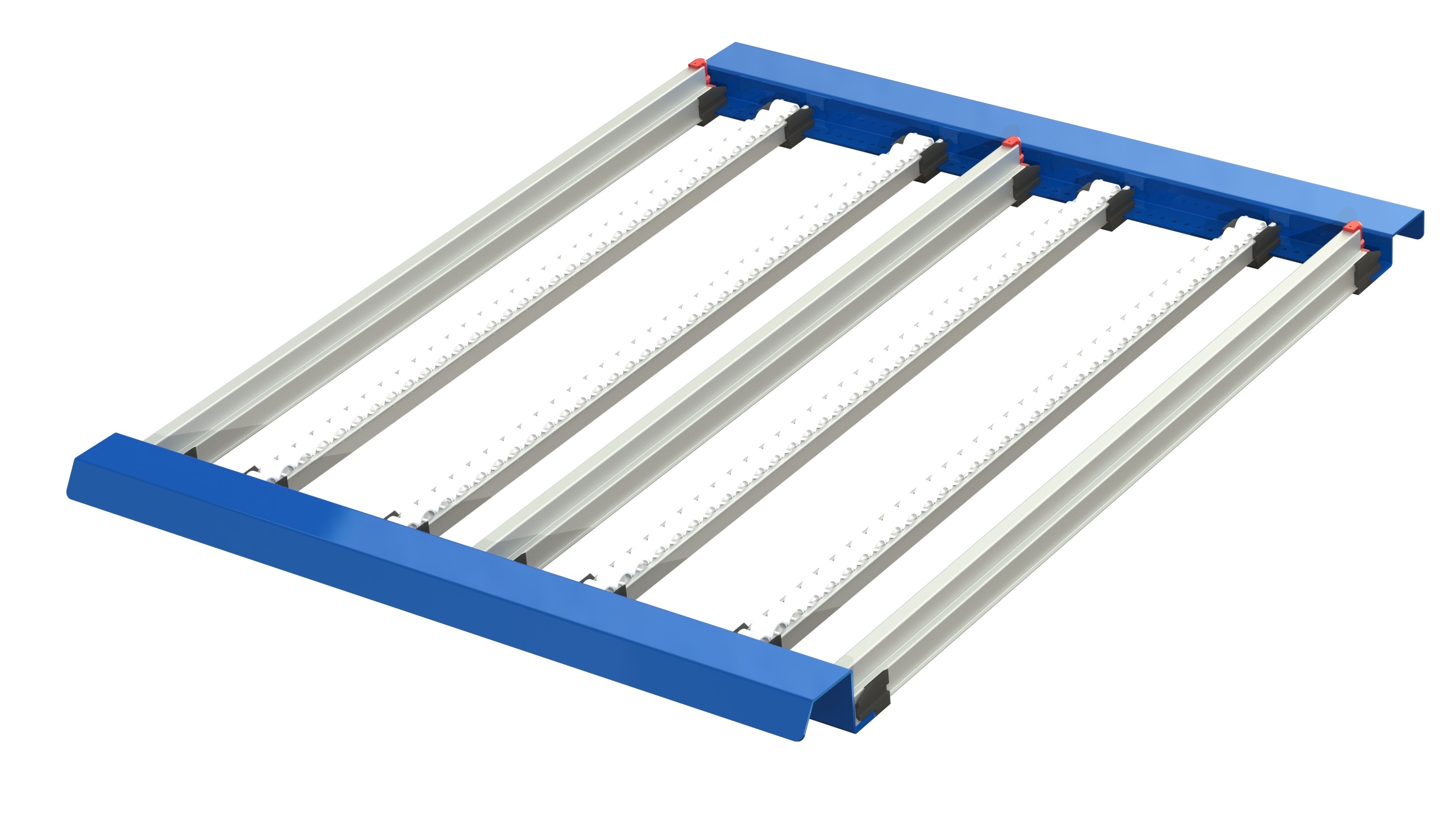 FIFO-PLAN med 300 mm justerbar plockfasad för enkel åtkomst. Den lutande stålhyllan kan justeras för att uppnå en bra ergonomisk position Arrangera antal kanaler efter bredden på plastlådor eller kartonger. Dessa har smarta profiler som passar direkt på dina bärbalkar i ett pallställ med djup på 1100 mm. Ett plan passar i en 950 mm sektion eller flera i bredd 8 rullar och 5 avdelare, vilket ger 4 kanaler lämpliga för plastbehållare eller kartonger med en maximal bredd på 200 mm.